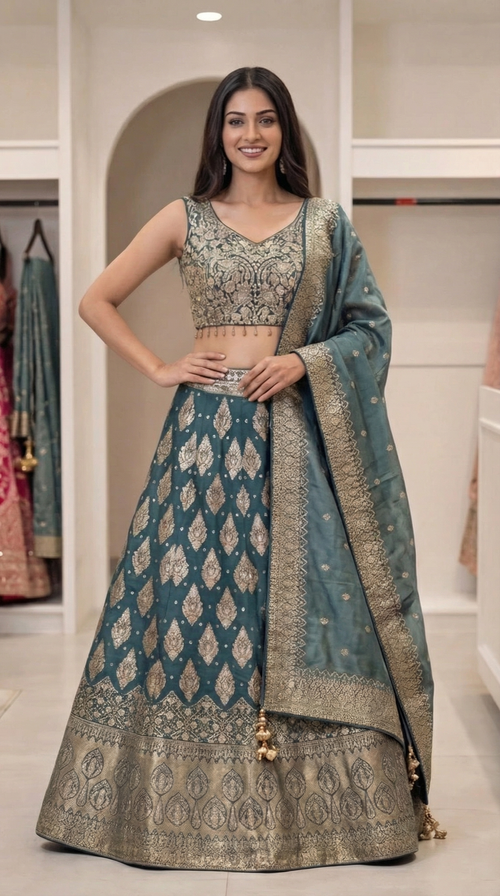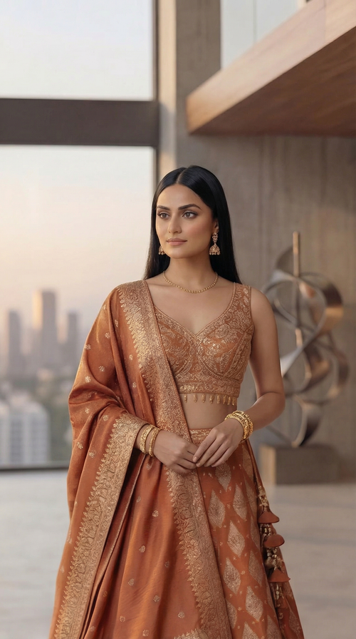 Zehra Royale Banarasi Lehenga Set – Sunset Rust