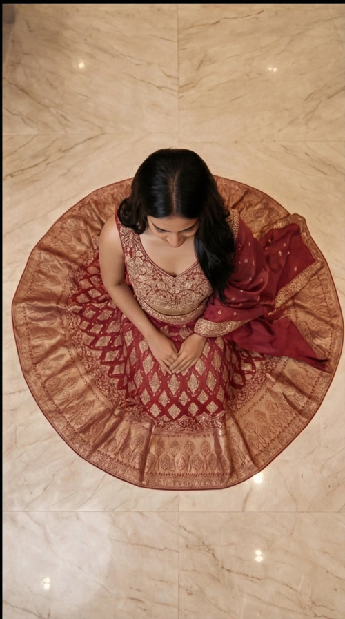 Zehra Royale Banarasi Lehenga Set – Ruby Wine